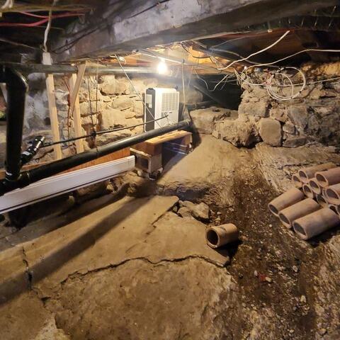 In Nottawa, ON, this crawl space once suffered from slight water infiltration, as evident in the 'before' photo. Our team installed the CleanSpace encapsulation system with Drainage Matting to effectively redirect moisture. A SaniDry Sedona dehumidifier now efficiently maintains the crawl space's humidity, while our robust WaterGuard system captures seepage. The 'after' photo showcases a dry, clean foundation, transforming a previously damp crawl space. Our comprehensive approach utilizes the finest products, ensuring a credible and reliable solution. Our addition diminishes mold risk and elevates the home's comfort.